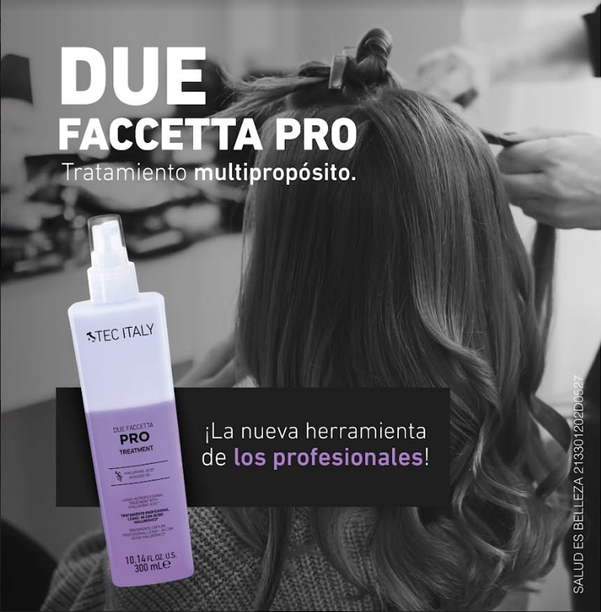 Due Faccetta Pro de Tec Italy es un tratamiento profesional intensivo de dos fases (bifásico) diseñado para reparar, hidratar y proteger cabellos extremadamente dañados o procesados. Enriquecido con ácido hialurónico, suaviza al instante, iguala la porosidad, acelera el secado y protege de herramientas térmicas y del sol.