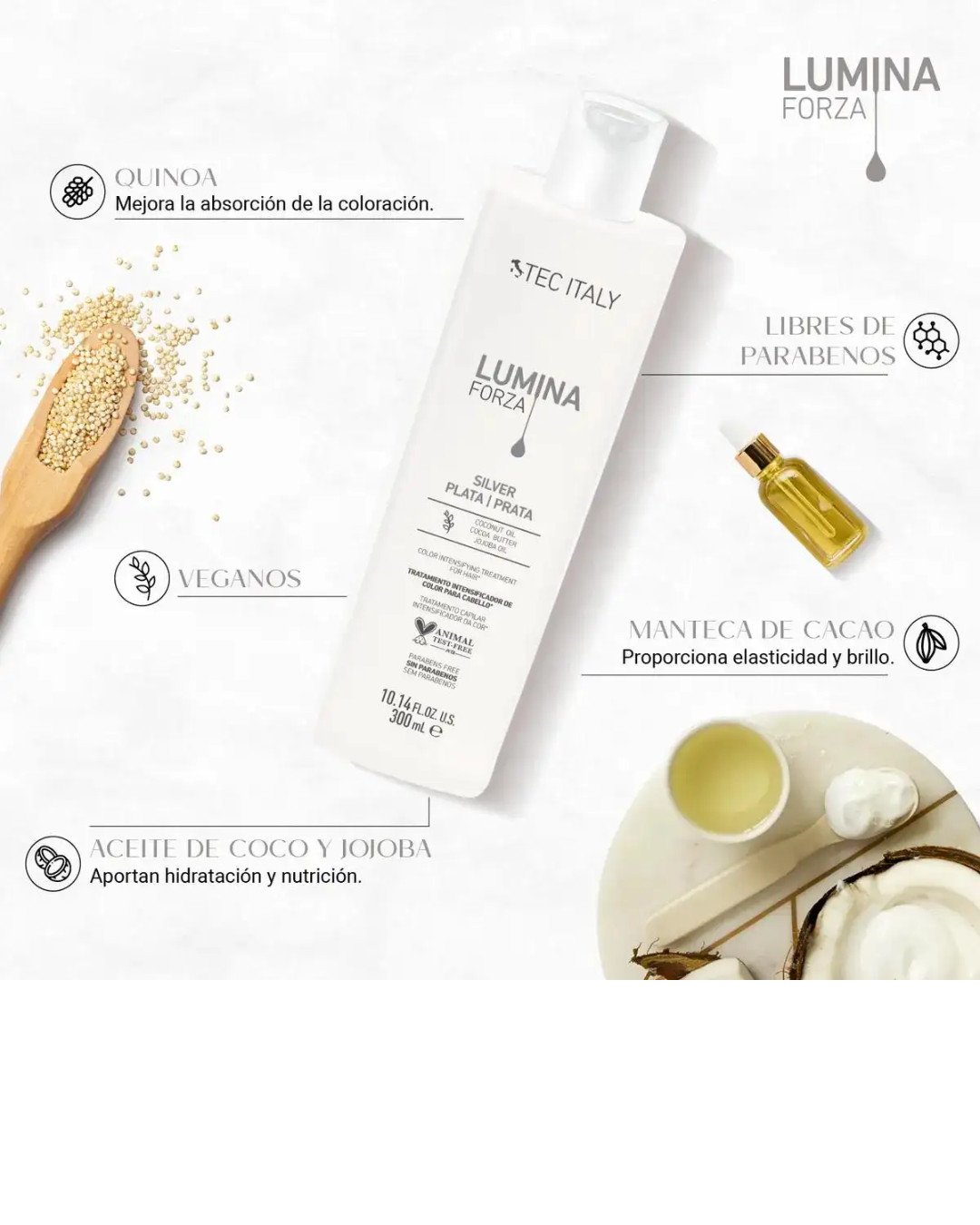 Lumina Forza de Tec Italy es un tratamiento intensificador y matizante diseñado para revitalizar, nutrir y prolongar la intensidad del color en cabellos teñidos o decolorados.