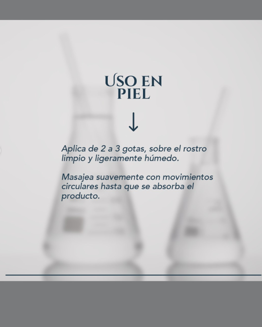 - Piel: Aplicar unas gotas sobre el rostro limpio y seco como parte de la rutina diaria para hidratar y reafirmar.